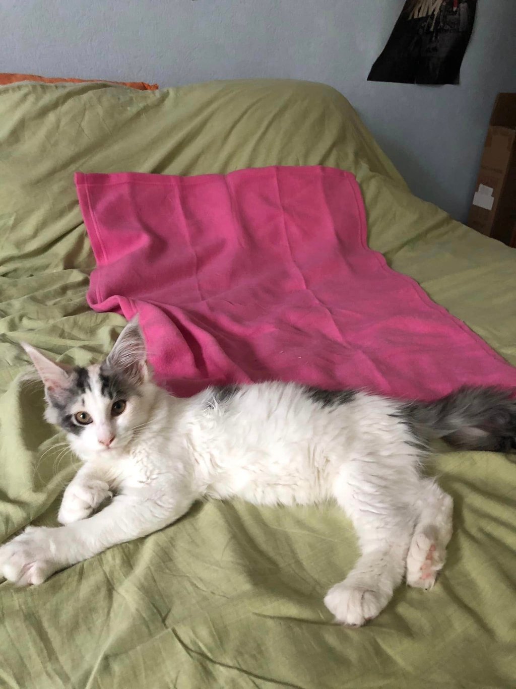 Arbremiel arrivera à la chatterie fin septembre 2025, il faudra encore attendre 1 an avant de voir les futur bébés van ou arlequin avec ou non des yeux bleus ou vairons. Mais PATIENCE est maitre mot dans l’élevage