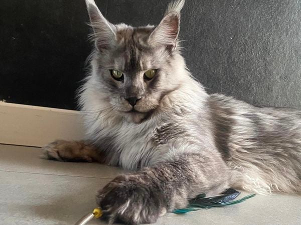Uros So'Occimoon est un chaton de 5 mois qui pèse presque 5 kg. Il est toujours aussi adorable et gentil, ce qui fait de moi une grande fan. Cependant, il devient complètement fou dès qu'il voit un plumeau ou son jouet (ressort). Il grogne tellement fort que cela peut parfois faire peur, mais heureusement il ne fait que grogner. Il devient de plus en plus beau au fil du temps et j'ai vraiment hâte de le voir devenir papa avec mes filles.