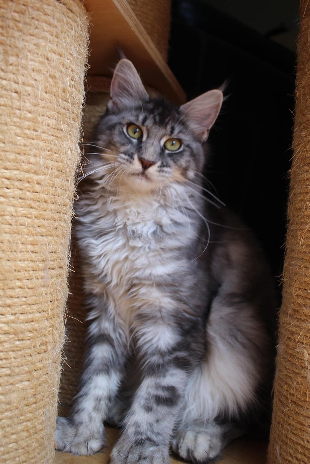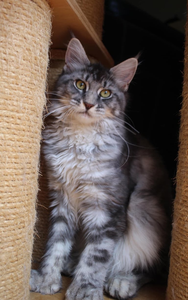 Leur fourrure n'est donc pas uniforme et est plus courte au niveau des épaules.. Normalement si votre Maine Coon va dehors, elle se modifie avec les saisons, s'étoffe en hiver et devient plus longue.