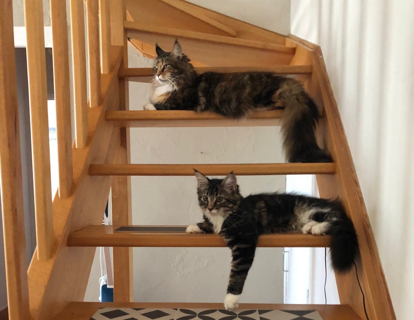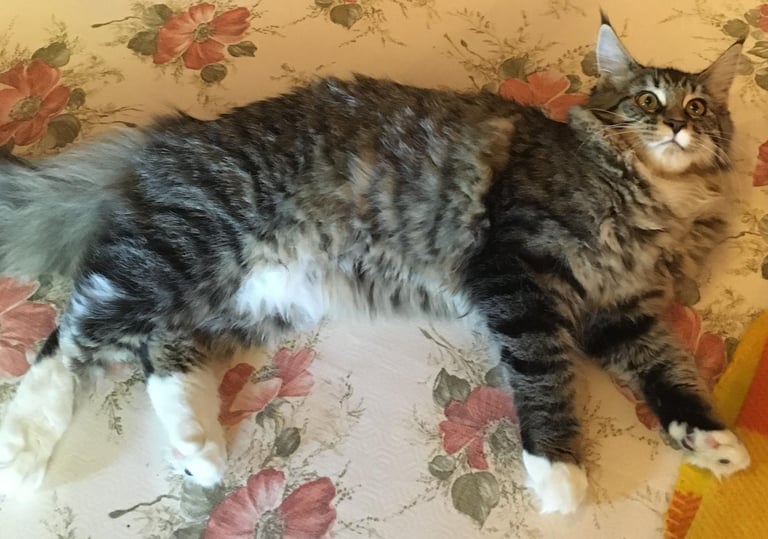 De croissance lente, le Maine Coon atteint sa taille adulte vers 3-4 ans. Le mâle est plus grand que la femelle.