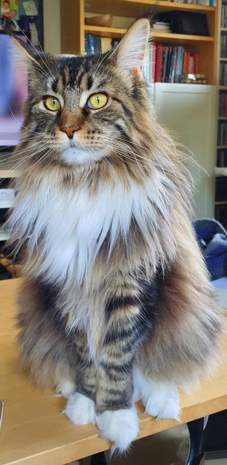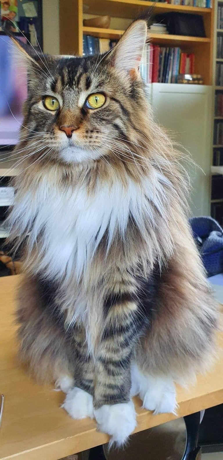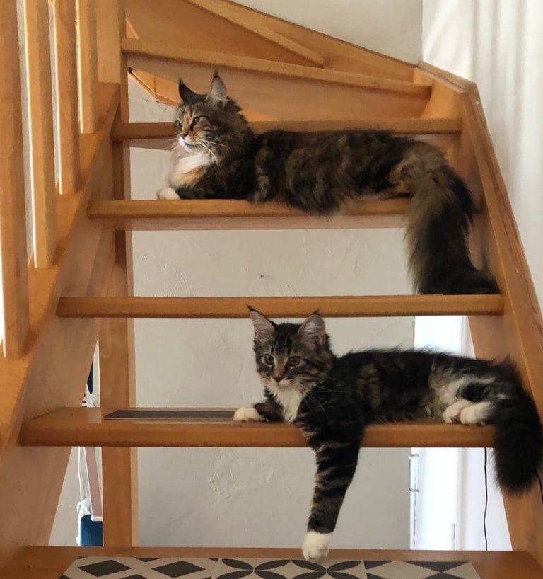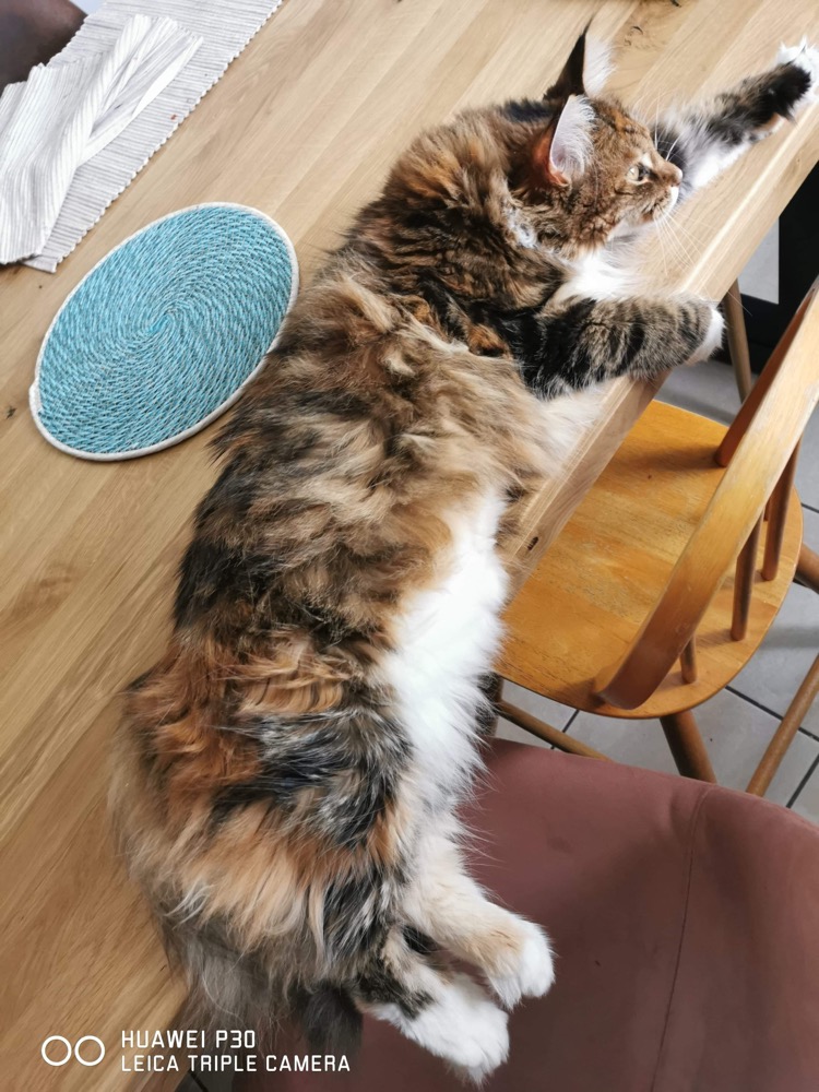 A l’heure actuelle, j’ai l’impression que les Maine coons polydactyles reviennent et sont de plus en plus appréciés. Ce que j’aime chez le PP (polydactyle) c’est leurs grosses patounes, j’adore et je ne trouve pas que ça leur donne une aide ou handicap par rapport à ceux qui n’en ont pas. Pour moi, ça leur donne un plus à leur morphologie.