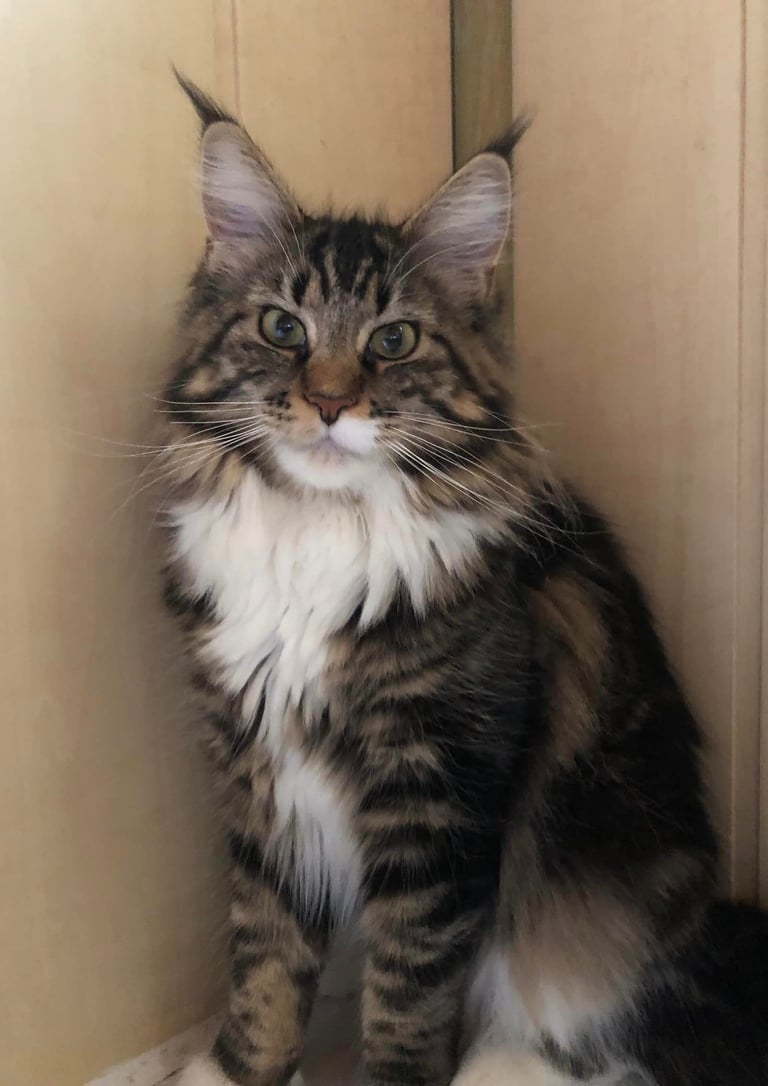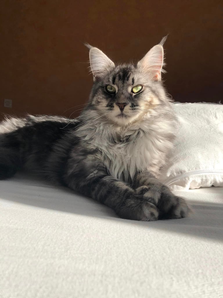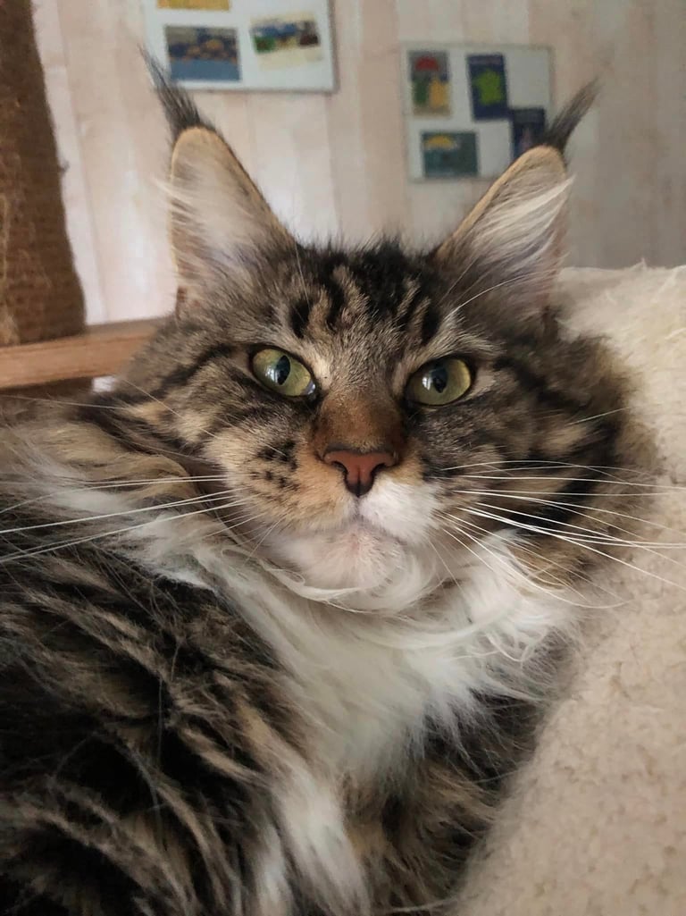 Usabella est née à la chatterie de mon premier couple qui m'a fait découvrir le maine coon. Elle a une belle ossature, une belle brown. Elle a un caractère bien trempée, ne se laisse pas faire par les autres, est très câline avec ceux qu'elle connaît.